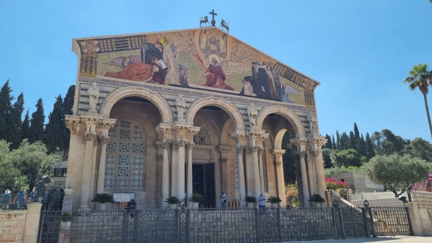 Früh am Morgen begann der erste Tag in Betlehem. Das erklärte Ziel für diesen Tag war die Altstadt von Jerusalem. Gut unterhalten durch verschiedenste Geschichten und Erzählungen unseres Reiseleiters verging die Wartezeit an der Grenze wie im Flug und wir kamen gut gelaunt auf dem Ölberg in Jerusalem an. Von dort aus ging es zur Kirche „Dominus flevit“, wo wir mit schönem Ausblick auf die Jerusalemer Altstadt Gottesdienst feierten. Danach ging es steil bergab in Richtung Garten Getsemani, Kirche der Nationen und dem Mariengrab, bevor wir uns dann wieder auf den Weg bergauf in Richtung Jerusalemer Altstadt machten.