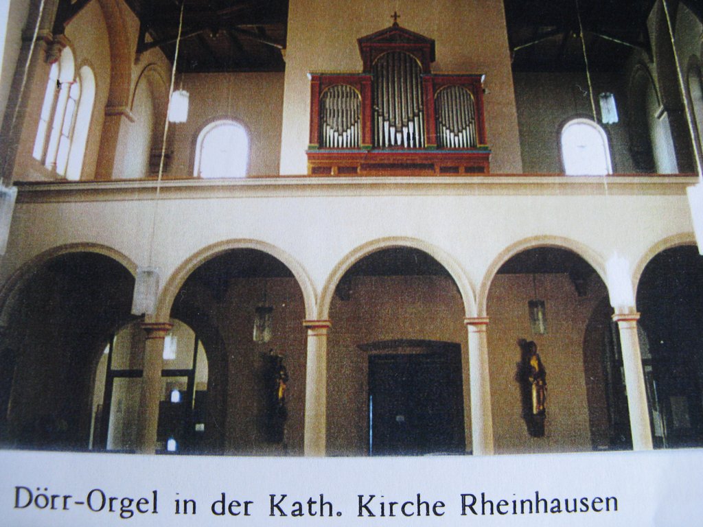 In geradezu idealer Weise harmoniert das schlichte dreiteilige Orgelgehäuse mit der Architektur der Pfarrkirche von Rheinhausen, die am 8.Mai 1881 eingeweiht worden war. Aus dem gleichen Jahr stammt das zweimanualige Instrument, das der badische Orgebauer Ignaz Dörr (1829-1886) aus Hardheim im Odenwald erstellt hatte. Dörr war ab 1860 als Orgelbauer tätig. Schon bald ging er vom trationellen System der Schleiflade auf den damals aktuellen Bau von Kegelladen über. Die Orgel in Rheinhausen bietet deshalb das heute nur noch selten anzutreffende Beispiel einer mechanischen Kegelladenorgel.