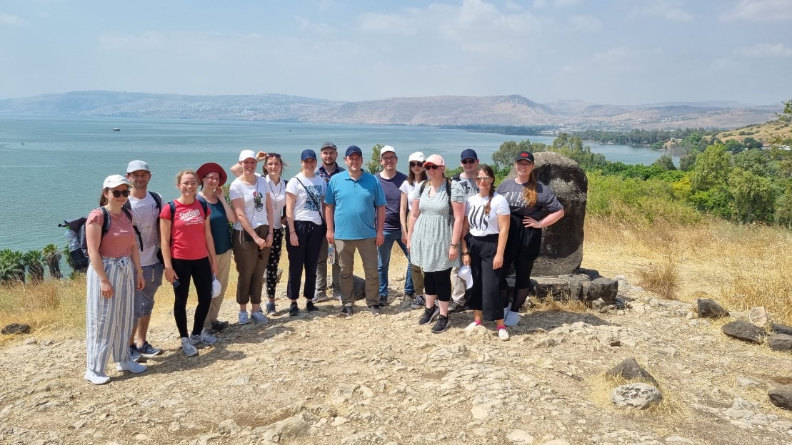 Nachdem wir Gottesdienst auf dem Berg der Seligpreisungen gefeiert hatten, ging es auf steinigen Wegen bergab durch die Hitze in Richtung See Gennesaret und wir genossen dabei den wunderbaren Ausblick. Unten angelangt besuchten wir weitere Orte Jesu am See Gennesaret wie beispielsweise Kafarnaum, der „Mensa Domini“ oder auch Midgal, die Heimat Maria Magdalenas. Am Nachmittag ging es dann mit dem Boot auf den See hinaus und wir durften, während wir den erfrischenden Seewind genossen, einen israelischen Tanz lernen – das sorgte nicht nur in unserer Gruppe für beste Stimmung.