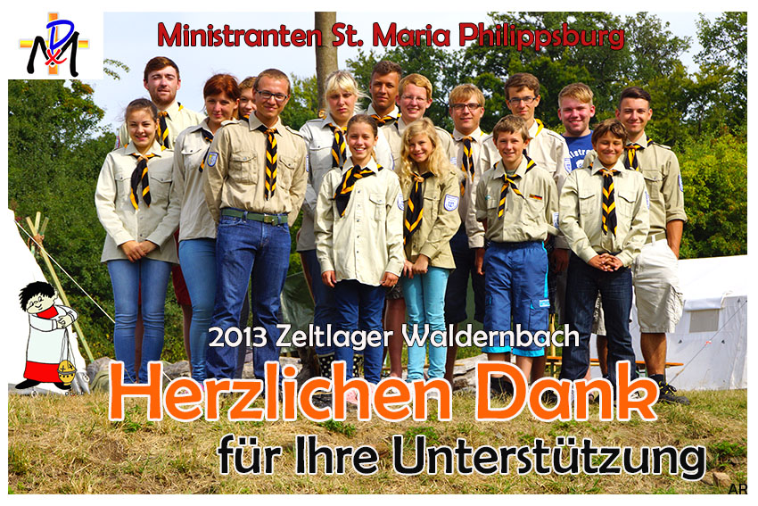 Wir möchten allen Freunden, Spendern und Gönnern der Ministranten für ihre treue Unterstützung danken. Ihr Engagement ermöglicht uns die Durchführung und Bewahrung der Zeltlagertradition bei uns Ministranten in Philippsburg.