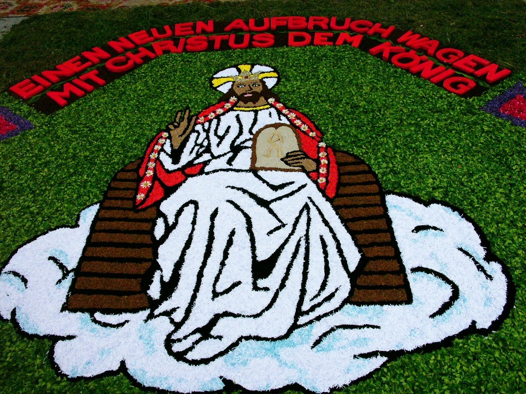 - an Fronleichnam - früher jährlich, jetzt alle drei Jahre - übernehmen wir die Verantwortung für eine Station und legen einen Blumenteppich